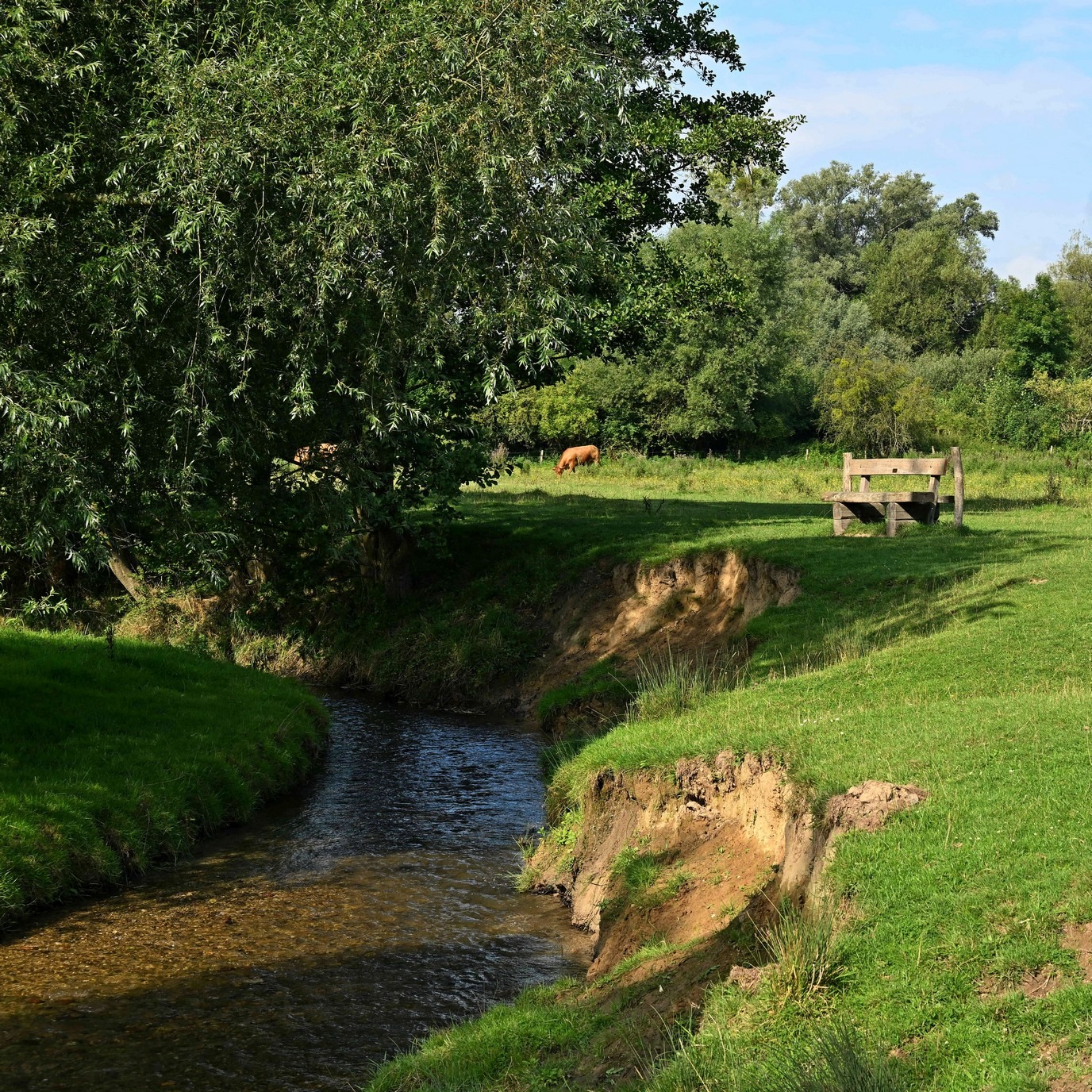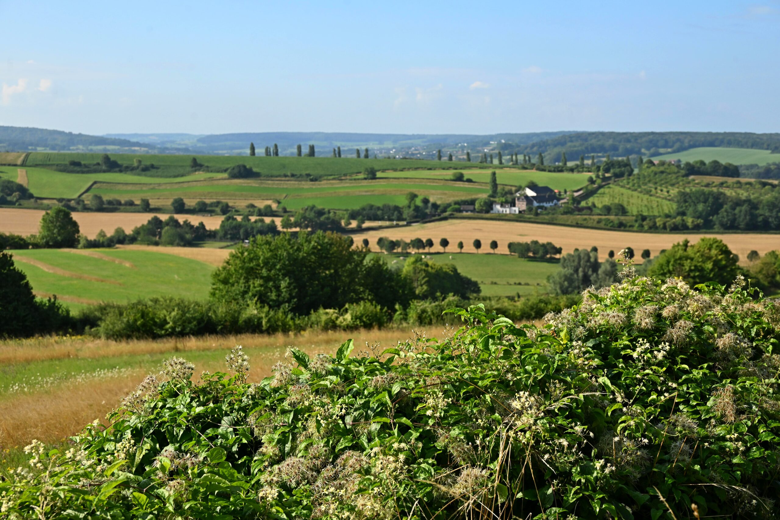 Onder het Eyserbos opent het landschap zich en geniet je van een spectaculair vergezicht over het Geuldal, waarbij je zelfs de Ardennen kunt zien liggen. De zeer bloemrijke graslanden zijn eigendom van WML, die hier drinkwater wint. In de vegetatie groeien vele zeldzame planten, zoals orchideeën, klavervreter en ruige weegbree. Een dergelijke hoeveelheid bloemen betekent ook een rijk insectenleven. Op een mooie zomerdag kun je zomaar 20 verschillende dagvlindersoorten tegenkomen.